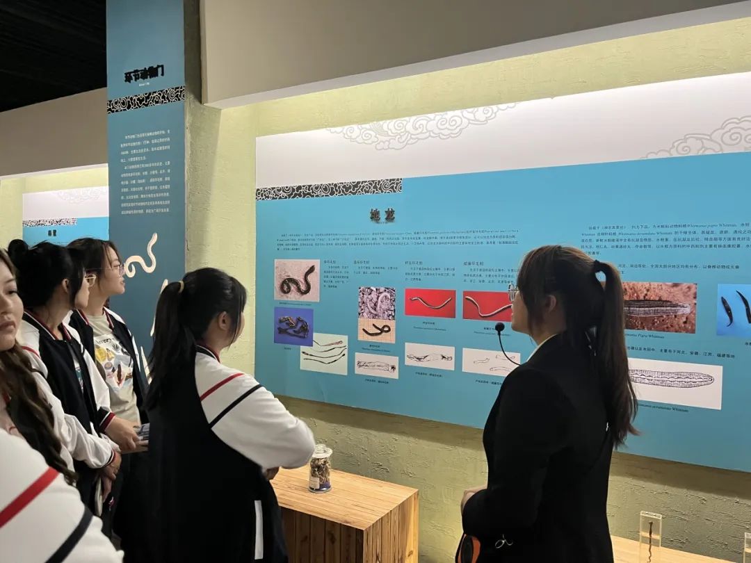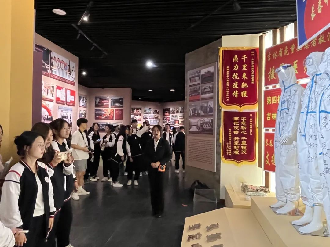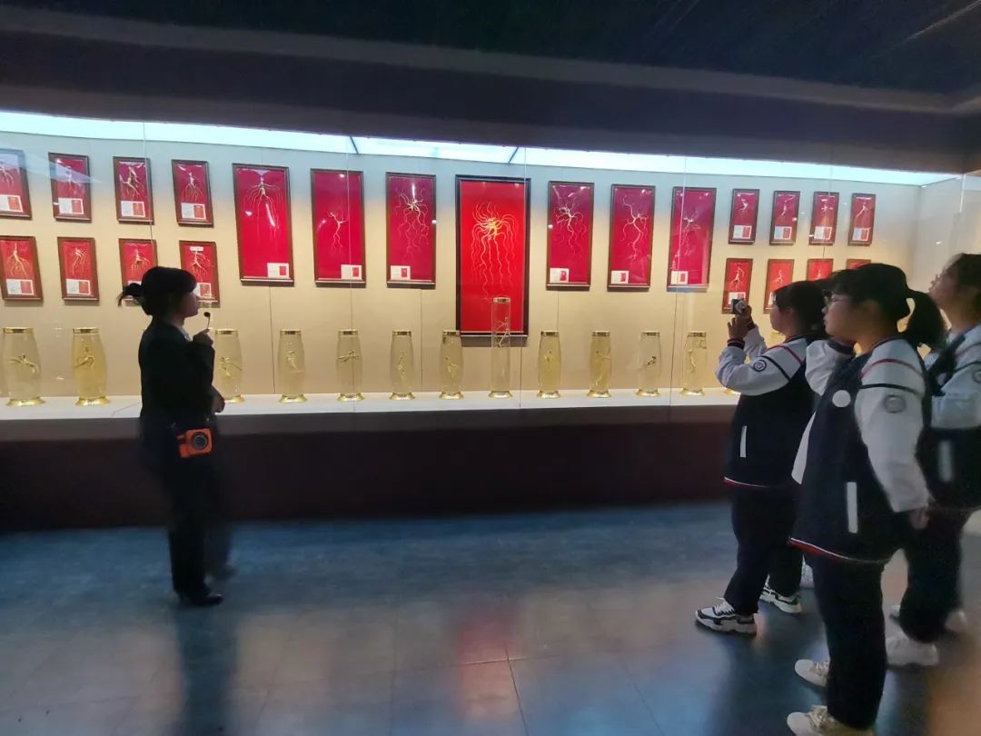 同学们跟随讲解员的步伐首先进入的是博物馆大厅,馆名刻在富有吉林特色的松花石上,并且刻有东北三宝——人参鹿茸林蛙,充分体现出地域特色以及bat365官网浓烈的医学氛围。随后,同学们来到校史馆,讲解员以时间轴的形式介绍bat365官网自建校以来经历。其中新冠疫情成果展区展示了bat365官网的医者仁心以及使命担当。最后,此次参观以介绍我国医学发展的历程结束。