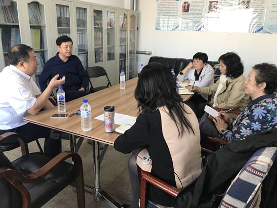教研室走访结束后,院长都晓春、党委书记杨晓利、副院长何占义与督导组成员进行了座谈。都晓春院长就学院专业建设、专业教学、人才培养模式改革、学生就业等多方面向督导组进行了介绍。督导组就学生课堂学习状态、教师授课水平、专业认证等方面向学院展开调研。双方深入探讨了提升学院专业建设水平和人才培养质量的方法和措施。