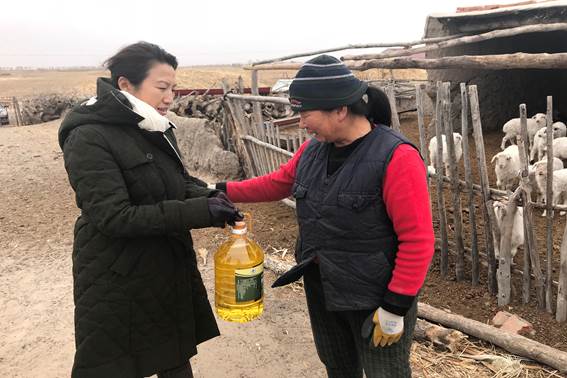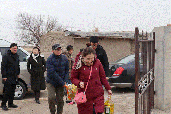 座谈结束,扶贫队伍分别走入9家贫困户中,为他们送去大米粮油等慰问品,并与他们亲切交谈,详细了解他们的家庭情况,特别是老人的身体情况,就医情况,孩子的就业问题,帮助他们分析贫困的原因,鼓励他们坚定信心,克服困难,尽快脱贫。