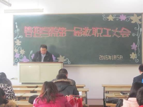 会上,院长都晓春作《bat365官方官网2015年工作报告》。全体教职工认真听取报告,并对《工作报告》和《bat365官方官网“十三五”发展规划(2016-2020)》(讨论稿)进行分组讨论,提出意见、建议。