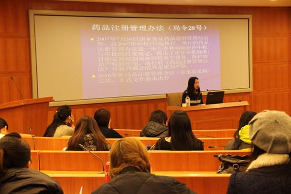 11月16日,bat365官方官网在研发中心国际报告厅举办“学研讲坛”系列活动之专业篇《药品注册的现状及未来发展方向》专题讲座。学院领导、全院教师、研究生和本科生学生代表参加了本次讲座。