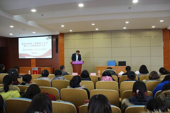 2016年12月21日,bat365官方官网于档案馆报告厅召开第二届教职工换届大会暨分工会换届选举大会。工会主席孙星参加了本次活动。院长都晓春首先做职工大会工作报告,从党建工作、教学工作、学科专业建设、队伍建设、科研工作、学生管理工作、财务情况等方面全面总结了学院2016年的工作情况,并对学院2017年的党政工作要点做了专题介绍。