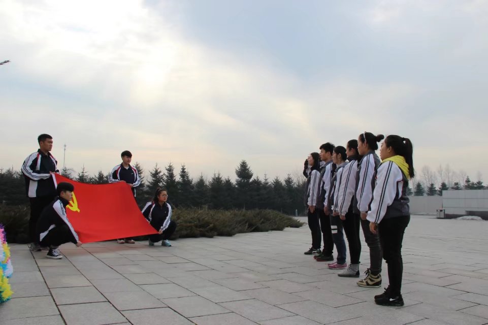 在活动中,全体学生向革命烈士献花,祭扫烈士墓,并默哀3分钟。学生党员在党旗前庄严宣誓,重温入党誓词,学生代表佟帅进行了发言。在抗日纪念馆工作人员讲解下,全体学生参观抗日纪念馆,看到了很多当年中国军民抗战的宝贵史料,并聆听了昔日的革命史诗。