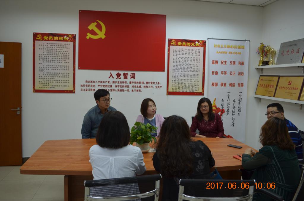 bat365官方官网党委推进“三服务,三提升”工程,2017年6月6日,bat365官方官网党委书记徐晓红、副院长刘淼、党委副书记兼副院长郝梓旭、办公室主任孙立、团委书记刘宇、政治辅导员于阳和部分学生干部赴净月区彩宇社区开展调研。