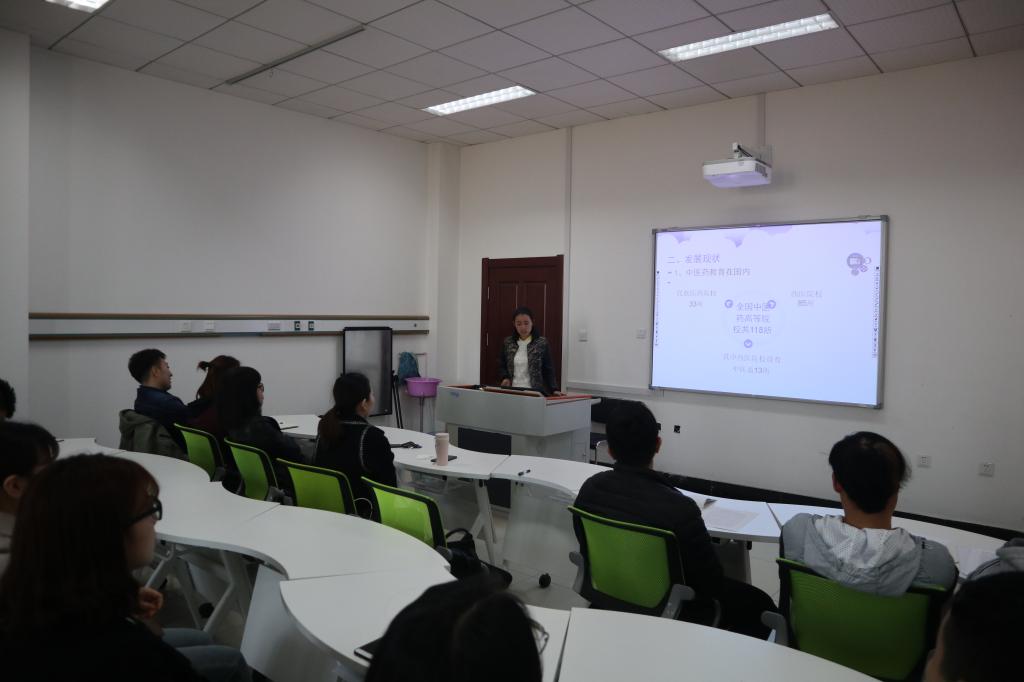 2017级公共卫生专业学生王晶做了题为《“一带一路”视角下的中医药教育国际化发展之路》的沙龙报告,结合相关社会热点事件与话题,从时代背景、发展现状、存在问题、对策分析及发展展望等五个方面向大家详细介绍了我国中医药教育国际化的相关知识,为同学们带来了一场中医药教育的精彩分享。