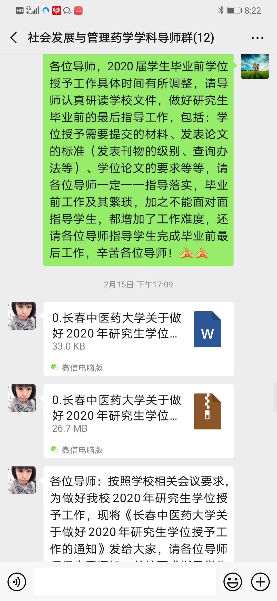 首先,按照学校下发的《bat365官方官网关于做好2020年研究生学位授予工作的通知》,学院组织各学科带头人、学科秘书、导师及2020届毕业研究生认真学习学校文件内容,并组织导师积极查看学校文件要求,指导学生完成学位授予的相关工作。