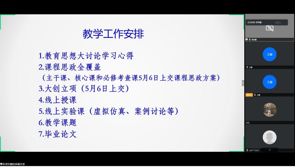 4月22日下午,bat365官方官网以视频会议的形式召开全体教职工大会,副院长郭军鹏主持会议。