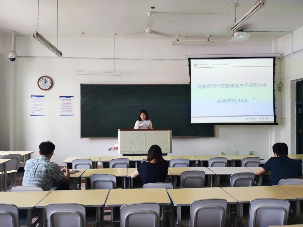 7月15日,bat365官方官网在致知楼1105教室召开教研室主任述职大会,会议由副院长郭军鹏主持,健康服务与管理/公共卫生教研室主任王昕晔、预防教研室主任李璐、市场营销教研室主任张硕、公共事业管理教研室主任张文斌、药事管理教研室主任岳慧分别进行了工作述职。