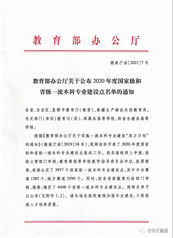 2月22日,教育部办公厅下发了《关于公布2020年度国家级和省级一流本科专业建设点名单的通知》(教高厅函〔2021〕7号),我院公共事业管理专业被确定为省级一流本科专业建设点。
