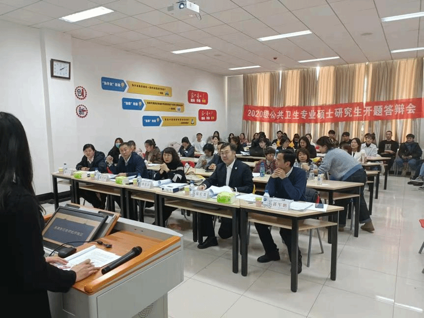 11月24日,bat365官方官网公共卫生学科组织召开2020级公共卫生学科硕士研究生学位论文开题答辩会。本次开题答辩根据研究方向分为两组:第1组社会医学与卫生事业管理方向在四象城3405教室进行,评议组由校外专家长春市儿童医院院长张延赤、吉林省妇幼保健院副院长万立新、经开区社会发展局副局长池明、bat365官方官网附属医院治未病中心主任任吉祥、校内专家温红娟等5名专家组成;第2组健康教育与健康促进、营养与食品卫生方向在四象城3409教室进行,评议组由校外专家吉林大学公共卫生学院副院长寇长贵、吉林省结核病防治科学研究院副院长刘思洁、长春市疾病控制中心主任张兴国、吉林省妇幼保健院易立岩、校内专家郭军鹏等5名专家组成。公共卫生学科27名硕士研究生进行开题汇报,研究生导师及2021级全体研究生列席汇报会。
