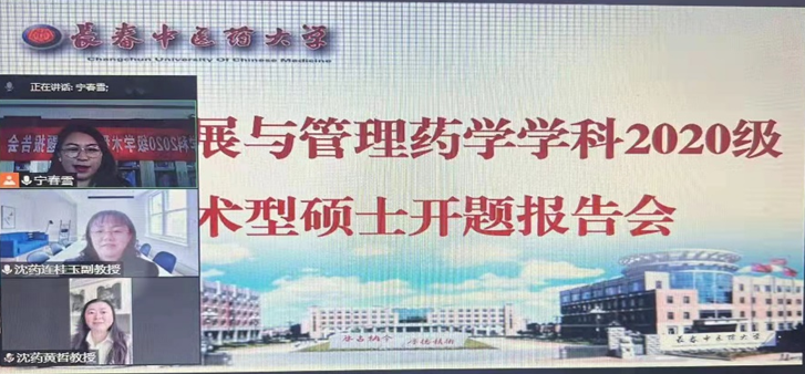 本次开题答辩评议组组长由学科带头人赫玉芳教授担任,评议专家组成员由沈阳药科大学工商bat365官方官网黄哲教授、沈阳药科大学工商bat365官方官网连桂玉副教授、郝梓旭副教授、赵树梅教授、夏昉副教授6名专家组成。本次开题答辩全体社会发展与管理药学硕士研究生以及学科秘书参会。