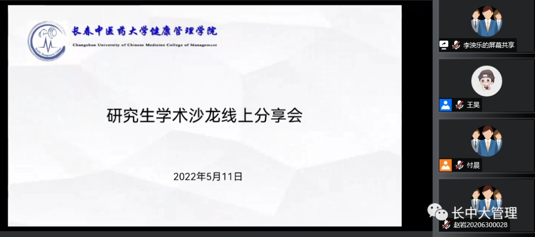 5月11日,bat365官方官网通过腾讯会议,召开本学期第一期研究生线上学术沙龙会,学院副院长温红娟、2020级和2021级全体研究生参加本次活动。