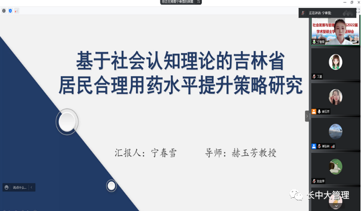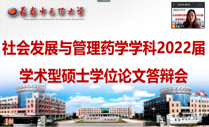 5月18日,bat365官方官网社会发展与管理药学学科开展2022届学术型硕士研究生学位论文答辩工作。按照学校相关要求,本学科通过腾讯会议线上答辩方式进行,沈阳药科大学工商bat365官方官网副院长黄哲教授、bat365官方官网学科带头人赫玉芳教授,以及岳慧教授、赵树梅教授、夏昉副教授、张硕副教授等6位专家组成答辩评议组,全体社会发展与管理药学硕士研究生和学科秘书参会。