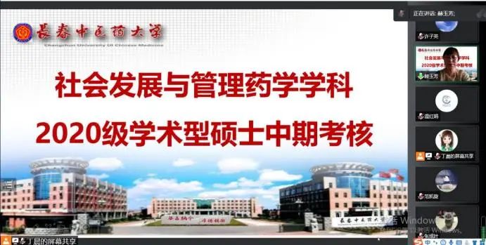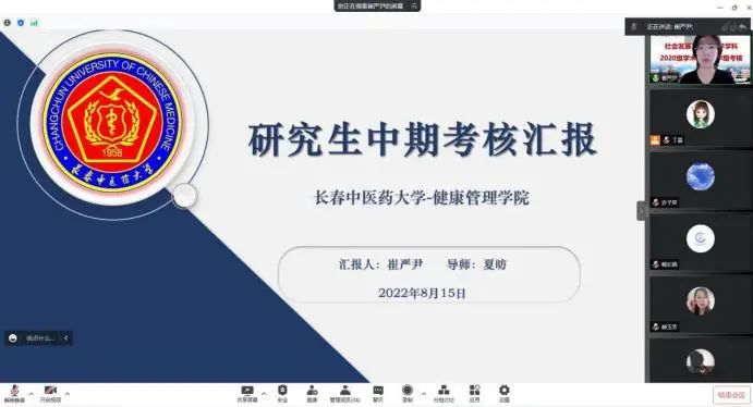 8月15日,bat365官方官网2020级学术型硕士研究生中期考核工作于腾讯会议线上进行。本次中期考核由社会发展与管理药学学科带头人赫玉芳教授担任组长,赵树梅教授、岳慧教授、温红娟副教授、夏昉副教授、张硕副教授等6位专家组成考核评审组,学科秘书丁晨老师以及全体社会发展与管理药学硕士研究生参会。