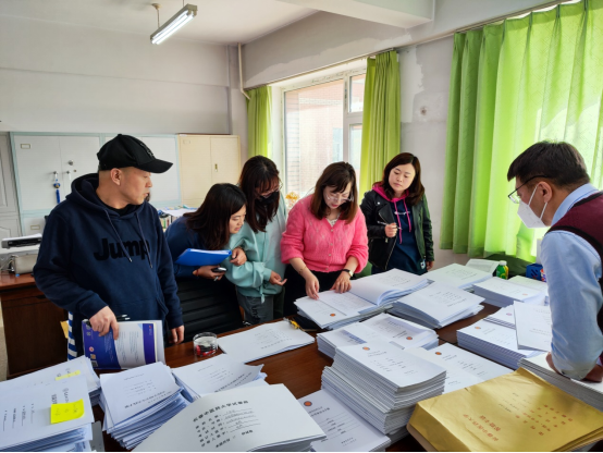 会后,学院各专业负责人、教研室主任及教研室秘书在赫院长的带领下,对审核评估迎评材料的准备情况进行了互检互查,通过对试卷、毕业论文及实践手册等材料的检查,各教研室对检查过程中发现的问题及时进行记录并立行整改。