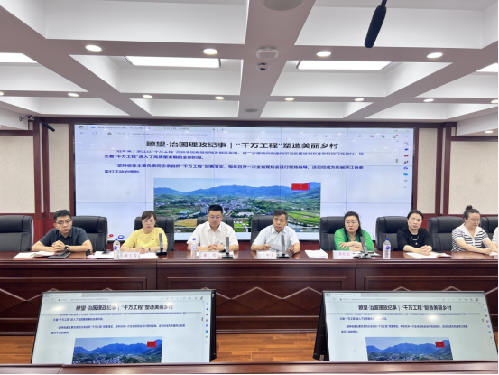 会上,王中喜对习近平总书记关于实施浙江“千万工程”的重要指示精神和案例进行了领学,全体党员现场观看了“千万工程”专题片。“千万工程”是习近平总书记在浙江工作期间亲自谋划、亲自部署、亲自推动的一项重大决策。20年来,浙江省坚持“一张蓝图绘到底”,持续深化“千万工程”,整治范围不断延伸,从最初的1万个左右行政村,推广到全省所有行政村;内涵不断丰富,截止2022年底,浙江全省90%以上村庄达到新时代美丽乡村标准,创建美丽乡村示范县70个,示范乡镇724个,风景线743个条,特色精品村2170个,美丽庭院300多万户。