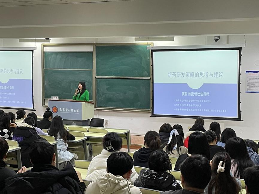 12月8日,学院邀请沈阳药科大学工商bat365官方官网副院长黄哲教授在致知楼1420教室,开展以“新药研发策略的思考与建议”为题的专题讲座。讲座由学院副院长赫玉芳主持,学院副院长温红娟、科研行政秘书郝颜及全体2023年级硕士研究生参加。