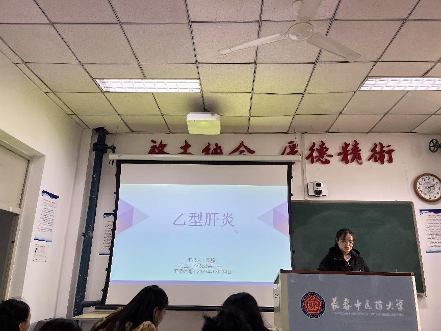 2022级公共卫生专业硕士研究生邱静同学以《乙型肝炎》为主题汇报,为同学们细致讲解乙肝的症状、诊断标准、危害以及如何预防乙肝,同时,对现阶段大众提出的乙肝常见六大误区进行阐述,不仅加深大家对乙型肝炎的了解,也促进同学们在传染病防治领域的学术交流。