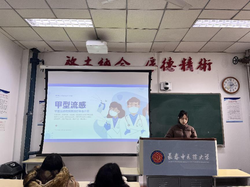 2022级社会发展与管理药学学科硕士研究生张国琴同学以《甲型流感预防科普》为主题汇报,主要讲解甲型流感的传播方式、预防措施、治疗方法以及患病时的注意事项,并教大家如何区分判断甲流与新冠,进而达到有效预防、合理用药的目的。进入秋冬季节以来,流行性感冒、支原体感染等疾病来势汹汹,此次甲型流感的预防科普使同学们能够更加科学防范,精准施策,坚守每一道健康防线。