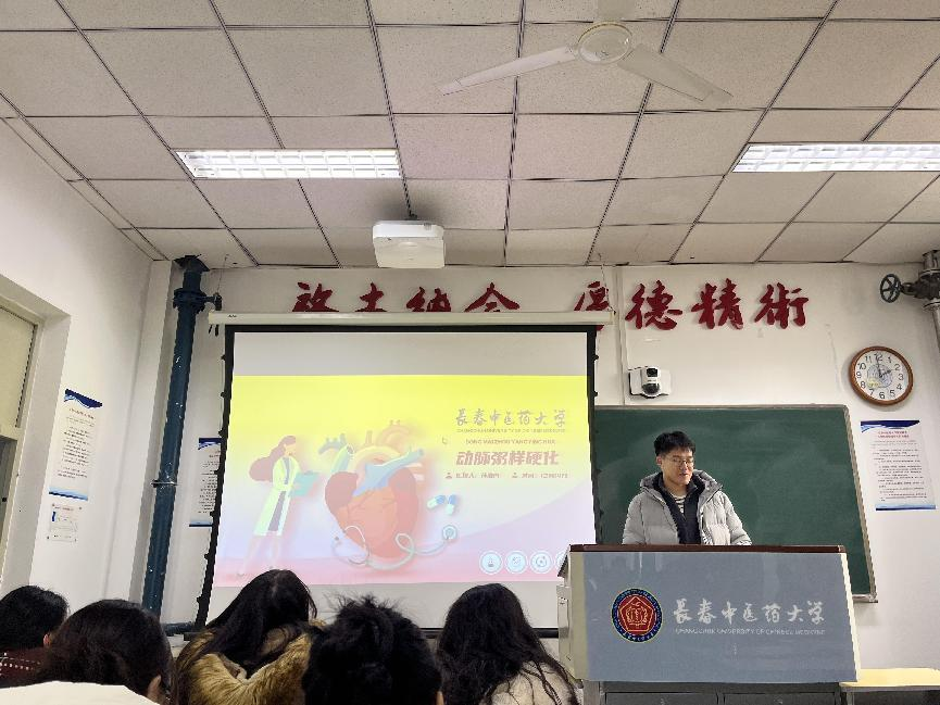 2022级公共卫生专业硕士研究生孙浩冉同学以《动脉粥样硬化》为主题汇报,首先强调动脉粥样硬化引起的心血管疾病是我国慢性代谢性疾病的主要死亡原因之一,随后类比阐述动脉粥样硬化的定义,并交代动脉粥样硬化的病因及症状,最后,与同学们互动探讨动脉粥样硬化的防治措施。通过对该病的宣教,提醒大家应保持健康稳定的生活方式,及时纠正不良生活习惯,减轻慢性病带来的不可逆损伤。