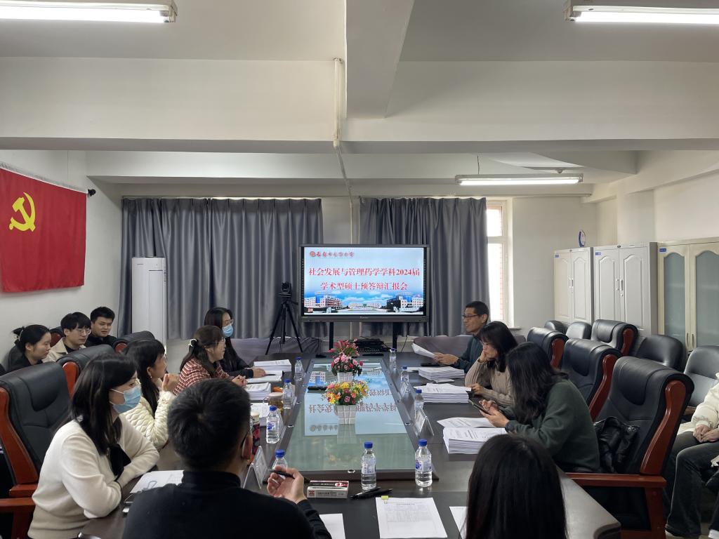 12月20日,bat365官方官网在明德楼427会议室组织召开社会发展与管理药学学科2024届硕士研究生学位论文预答辩汇报会,社会发展与管理药学学科共9名硕士研究生进行预答辩。