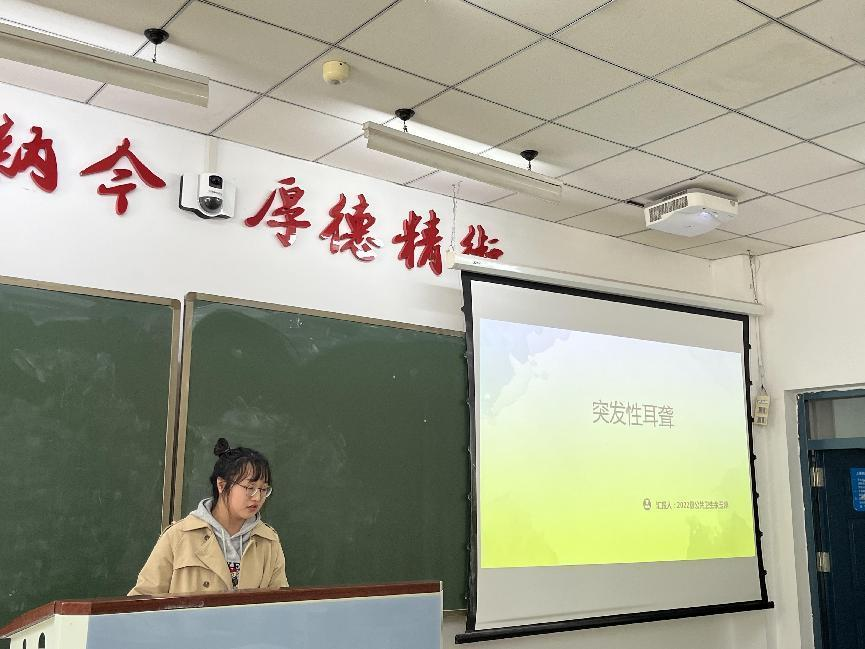 2022级公共卫生专业硕士研究生余玉婷同学以《突发性耳聋》为主题汇报,首先简要介绍突发性耳聋的定义概念,并对该病当前国内外现状进行分析,随后就突发性耳聋的临床表现与诊断、治疗与预防展开细致讲解,相关数据显示,近年来,国内外突发性耳聋患者年轻化趋势明显,通过对该病的相关分享,可以加强同学们对听力健康的重视程度,进而减少听力损伤。