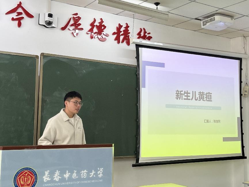 2022级公共卫生专业硕士研究生张浩东同学以《新生儿黄疸》为主题汇报,主要讲解新生儿为什么容易发生黄疸、生理性黄疸与病理性黄疸的区别、黄疸程度评估以及黄疸的治疗方法四个方面内容,提升同学们对儿童遗传性疾病的了解与认知,同时也掌握了更多有关出生缺陷与遗传病精准防控的新理论、新知识。