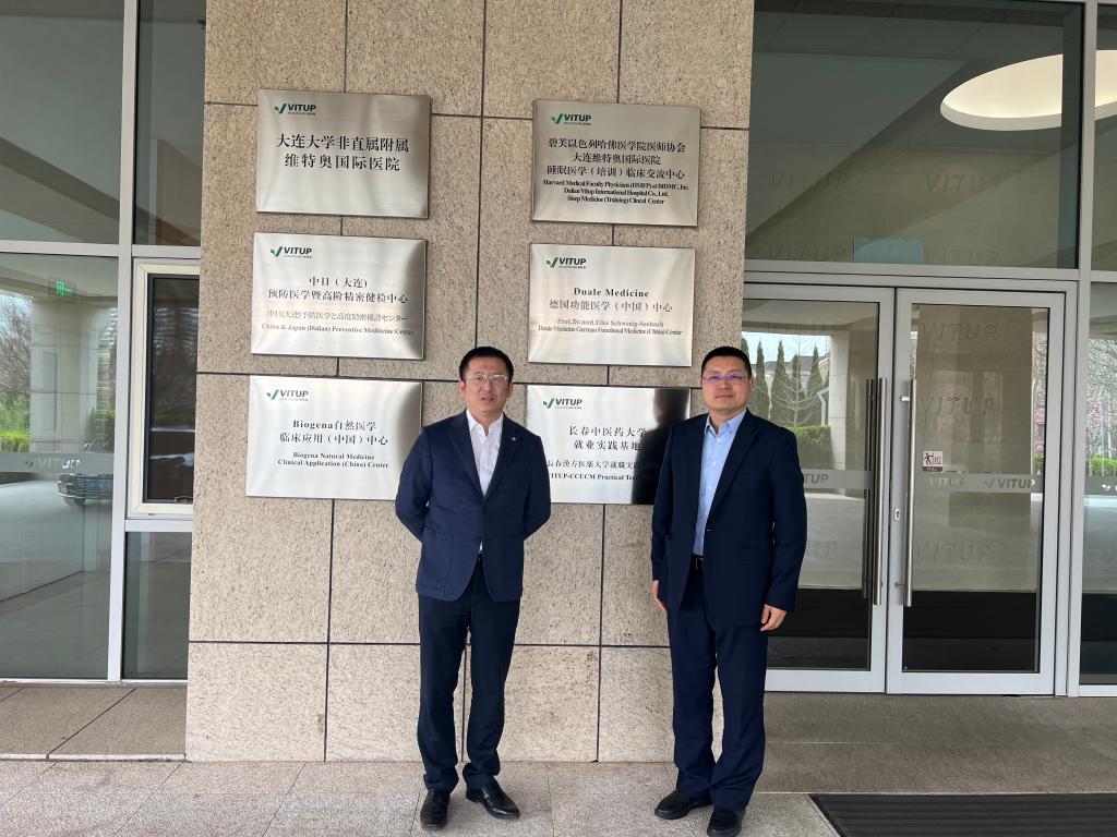 4月19日,bat365官方官网院长越皓研究员,赴大连维特奥集团访企拓岗,参观了大连维特奥国际医院、健康小镇养老社区,对接了可供学院本科生各专业教学实习和就业实践的岗位,介绍了学院本科专业的人才培养特色和发展方向。创新医疗和康养产业随着“健康中国”战略走向纵深,社会消费热点转向康养的趋势愈发明显,处于高度景气周期。bat365官方官网积极与新医疗新康养行业的优秀企业合作,促进本科生集中规范化毕业实习和高质量充分就业工作。