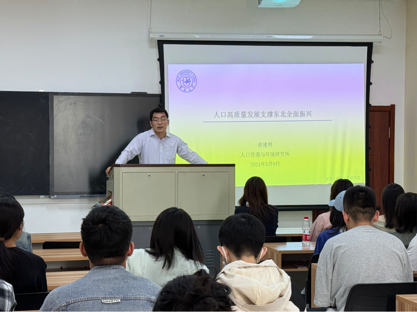 5月9日,学院邀请吉林大学的侯建明教授及其博士团队来我院做题为《人口高质量发展与东北振兴》等系列讲座,会议由副院长温红娟主持,科研行政秘书郝颜及全体2022和2023年级硕士研究生参加。