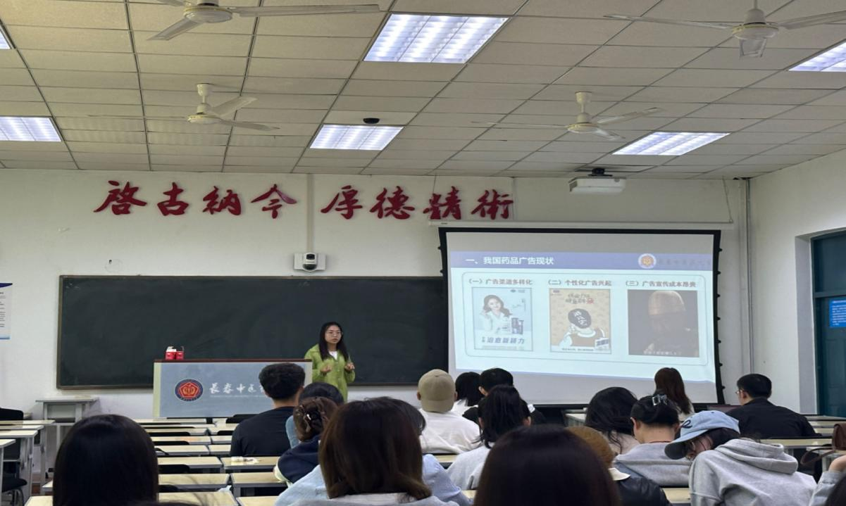 2023级社会发展与管理药学硕士研究生刘琳琳同学以《药品广告底线》为主题汇报,从药品广告现状、市场监督管理、法律法规、职业素养等方面阐述我国目前药品广告发展,揭示药品广告代言领域乱象丛生、侵害消费者权益以及扰乱市场秩序等问题。根据《药品管理法》、《广告法》相关规定,树立正确药品消费观念,牢固药品安全理念,以期贴合“健康中国2030”战略服务。通过对该内容的分享,使同学们了解目前我国药品广告相关情况及发展现状,增强同学们对药品广告监管的认识和重视。同时,也提醒大家要保持理性消费观念,不轻信虚假广告,选择正规渠道购买药品,确保自身用药安全。
