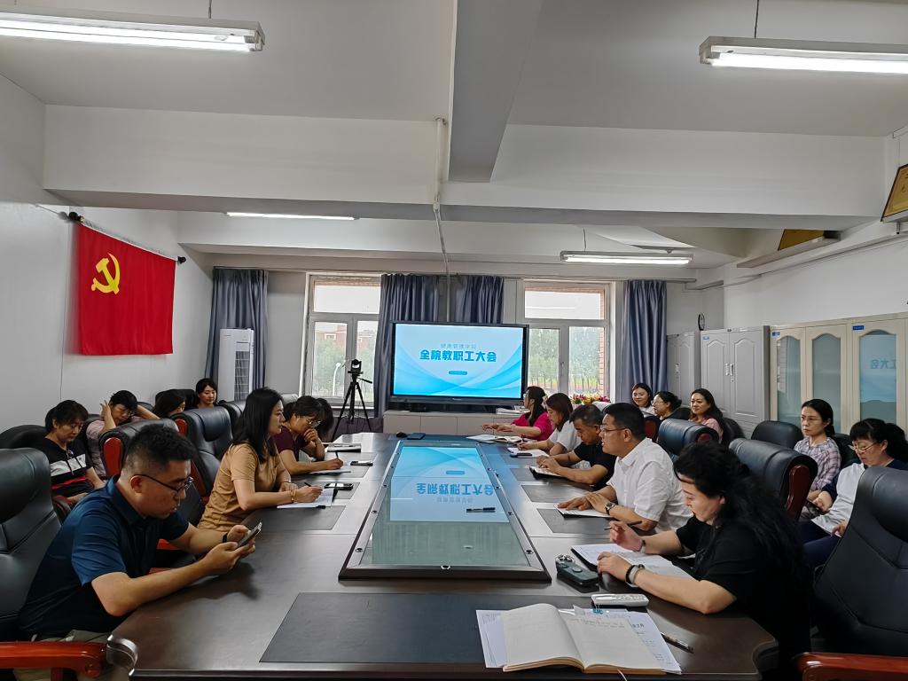 党委书记王中喜针对新学期党建工作、贯彻落实党和国家方针政策,抓好党纪学习教育,师德师风,学院党组织建设,精神文明建设,党风廉政建设,开展职工阳光体育运动和安全工作等各项工作提出明确要求,希望全体教师以饱满的精神面貌投入到新学期的工作。