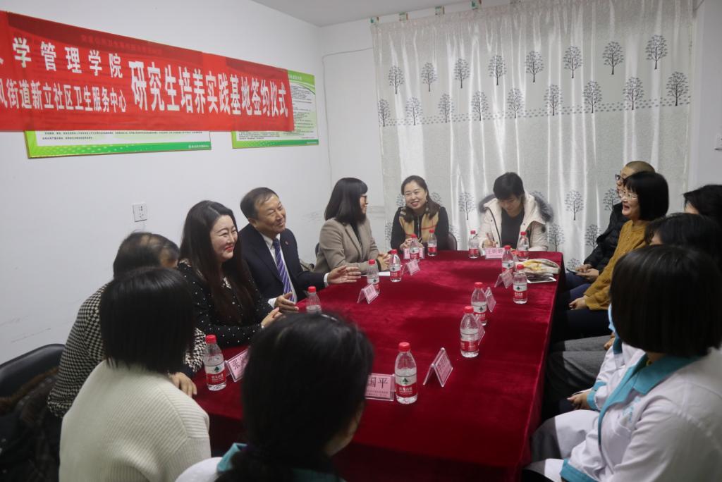 首先,双方领导就在长春汽车经济开发区东风街道新立社区卫生服务中心建立“bat365官方官网bat365官方官网研究生培养实践基地”事宜展开座谈。刘淼副院长就我院公共卫生学科专硕培养方案,以及研究生培养的人才目标做了详细介绍。都晓春院长就bat365官网公共卫生专业研究生的学生情况、专业培养目标、校内导师情况、吉林省公共卫生专业现状、吉林省中医药发展建设情况、双方互利共赢具体做法等方面做相关介绍。朱晓红院长首先表达了对学院信任的感谢,并表示将积极配合学院公共卫生专业研究生的实践基地工作,为学院的育人工作搭建好平台。潘丽华副局长表示目前社会发展正需要公共卫生专业型的人才,将全力支持学生的实践基地工作,顺应卫生健康事业的需要,将理论与实践相结合,为将来更深层次的合作提供支撑。