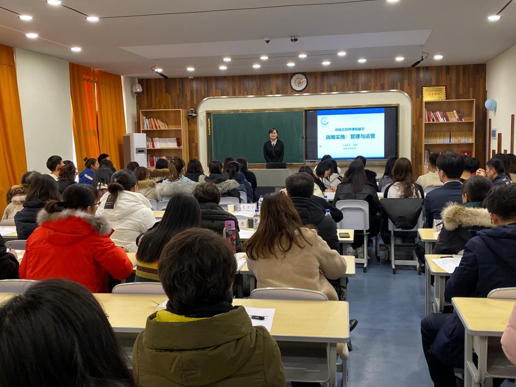 2019年12月19日,bat365官方官网《战略管理》课程负责人谢铮老师,以项链式双师教学方式,开展了全校的教学改革公开课。公开课邀请到一汽资本控股有限公司人力管理中心张宝总经理,校督导组,高等教育研究中心、教学质量监控与评价中心主任,教务处副处长,各学院主管教学院长,以及全校教师50余人观摩了本次公开课。