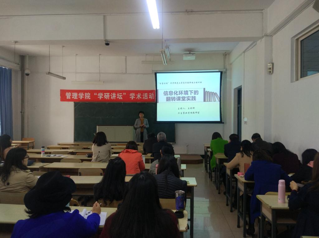 活动由参加华中师范大学培训班的三位教师谢铮、宿哲骞、王昕晔主讲,做了题为《信息化技术辅助下的新型教学课堂设计》的学术交流活动。