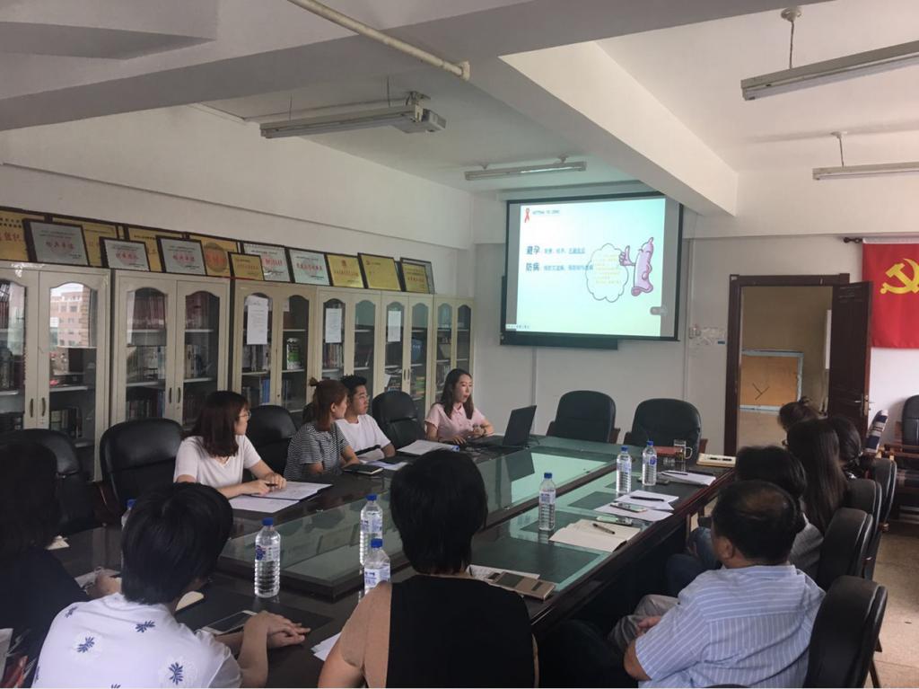 研究生何凯铭、孙朦、王辛格介绍了其在性病艾滋病科的实习内容,三人分别从性病艾滋病的传播途径、传染方式、防治措施及工作进展几方面进行系统介绍,使与会同学们了解到,艾滋病的防治宣传工作尤为重要,防治任务任重而道远。