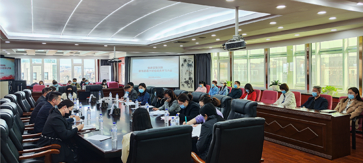 学校党委副书记潘正岩在讲话中强调,深刻认识教育思想大讨论的重要意义,一是要认真学习、更新理念,准确把握教育教学改革面临的新形势新任务。二是要明确任务、坚定目标,站在新的历史方位上谋划学院人才培养工作。三是要解放思想、全员参与。通过讨论形成符合自己学院特色的建设方案,要一院一策。四是要坚持问题导向、持续改进,通过开展教育思想大讨论做好补短板、强弱项,不断提升工作能力,全面推进学院各项事业的快速发展。