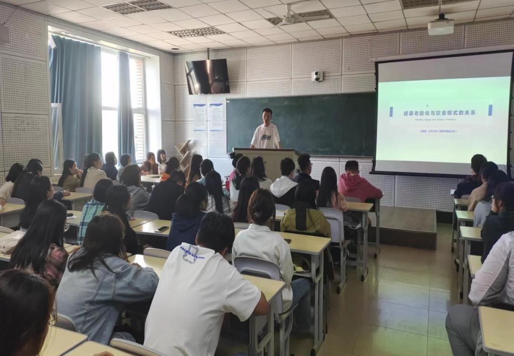 王祖保同学以《健康老龄化与饮食模式》为主题汇报,由健康老龄化与饮食模式的背景引入汇报内容,讲解了什么是健康饮食模式、世界公认的三大健康饮食模式以及如何计算饮食模式,汇报主题贴近日常生活,有利于同学们培养正确的饮食习惯。