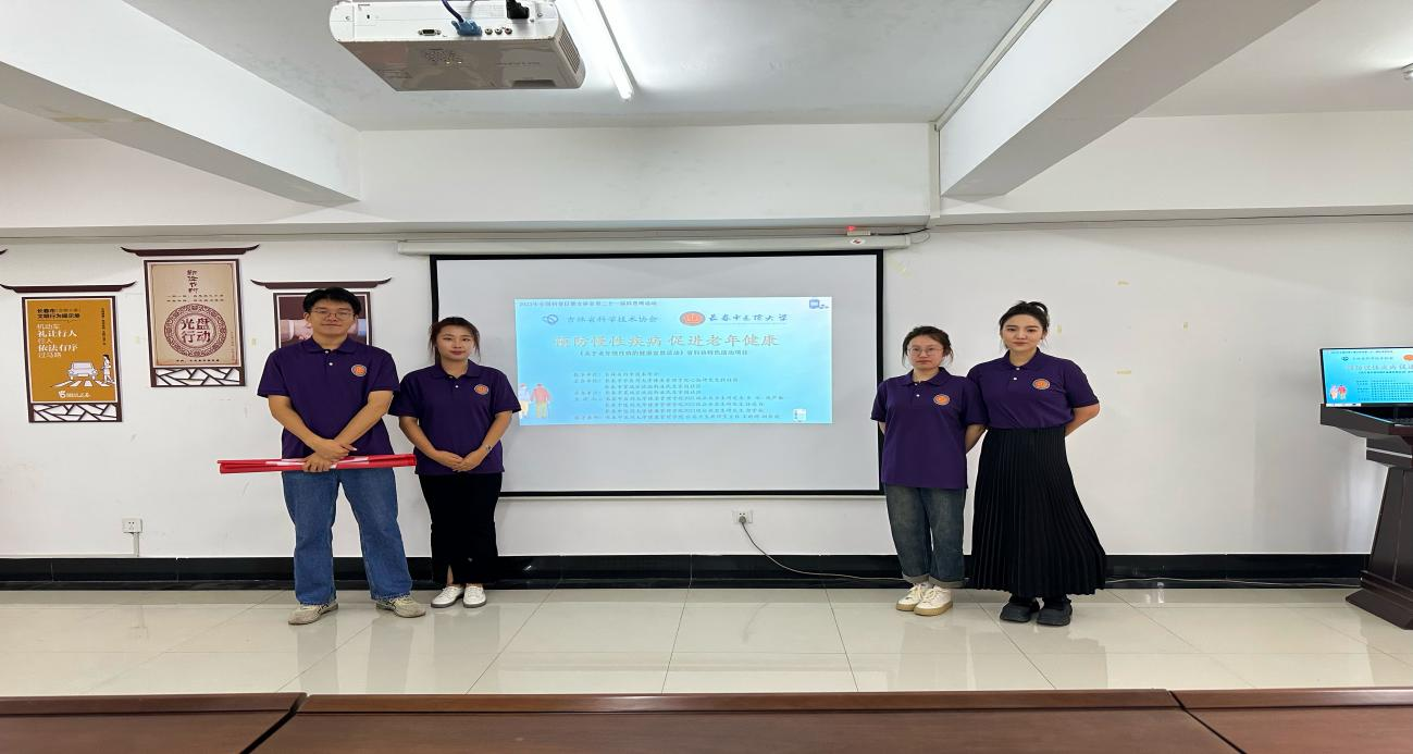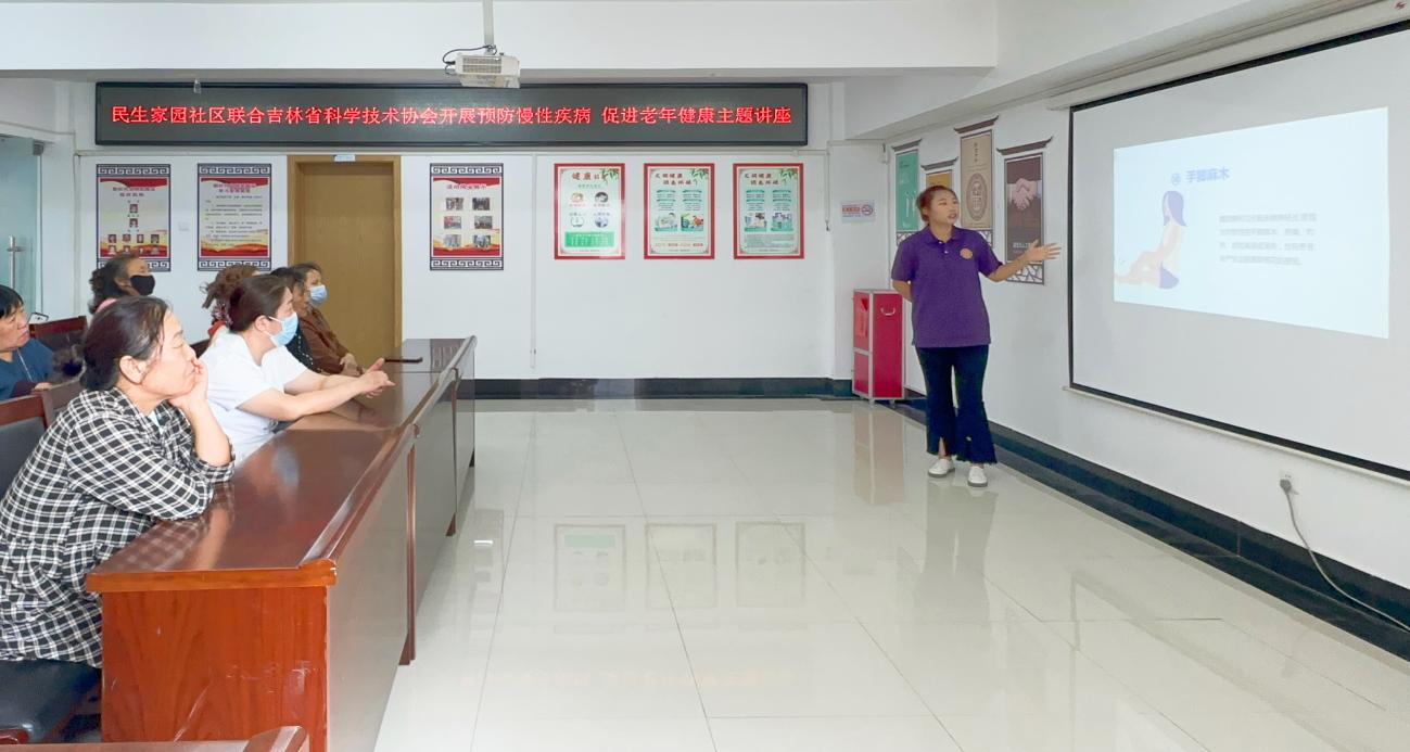 9月22日,bat365官方官网bat365官方官网心扬研究生科创团联合长春市宽城区欣园街道民生家园社区举办“预防慢性疾病、促进老年健康”科普讲座。在bat365官方官网bat365官方官网公共卫生专业导师王昕晔的指导下,由4名公共卫生专业硕士研究生分别以脑卒中、慢性支气管炎、动脉粥样硬化、糖尿病等4种老年常见慢性病为主题进行健康宣讲,帮助社区居民正确认识慢性病,从而提高应对慢性病的能力,尽可能避免或减轻慢性病发病风险。