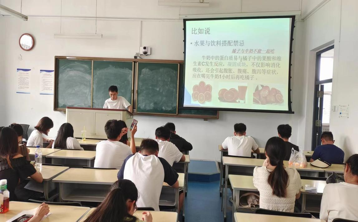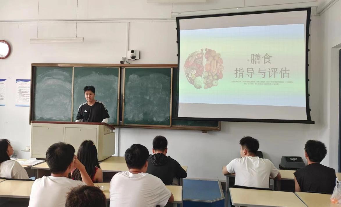 解博洋同学以《膳食营养与评估》为主题汇报,通过案例分析的方式介绍成人食物的能量和营养素的需要,强调食物营养类别的识别以及均衡膳食的食物选择。告诫同学们,在膳食的选择上应该更加讲究营养搭配、均衡饮食,才能维持身体的健康和活力。