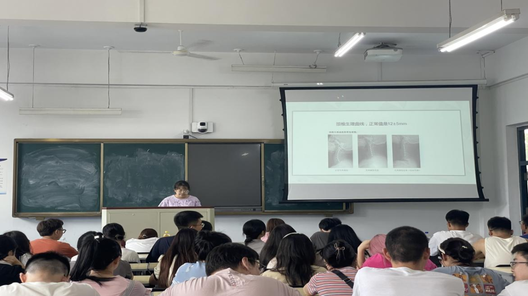 赵雪莹同学以《颈椎病》为主题汇报,主要内容包括颈椎病的病因,颈椎病的分型和颈椎病的治疗等三个方面。系统的讲解颈椎病的外因、内因以及临床表现,举例说明颈椎病正在趋于年轻化,提醒同学们掌握正确的坐姿卧姿、加强身体的锻炼、注重饮食习惯等预防颈椎病的发生。