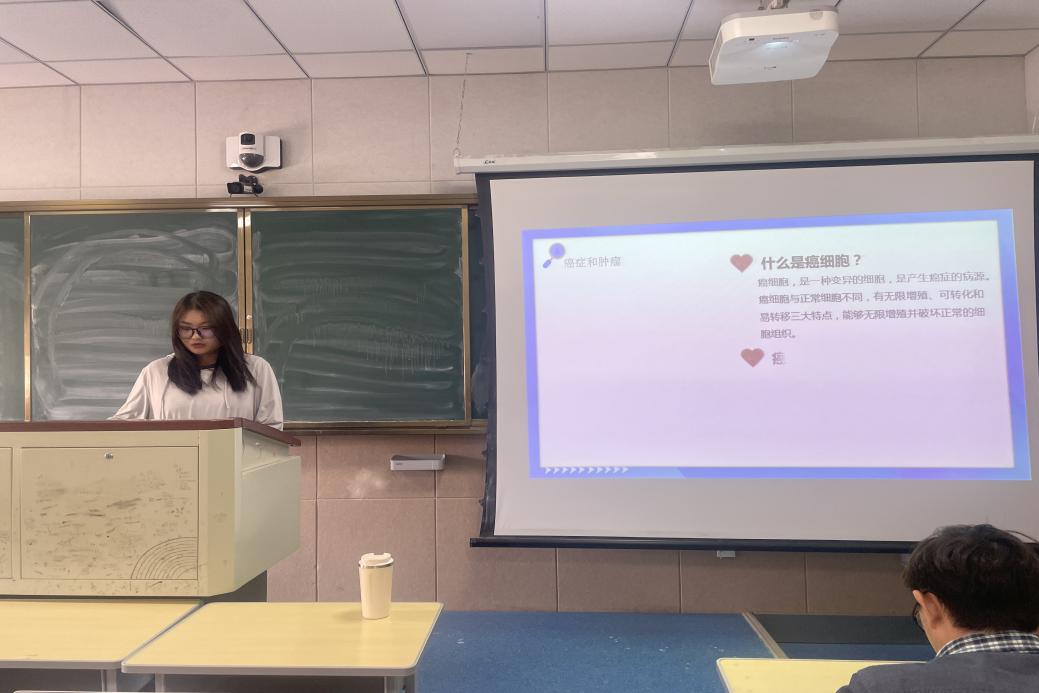 本期沙龙由2021级三名研究生进行汇报分享,2021级社会发展与管理药学专业硕士研究生韩长娟以《关于癌症的科普》为主题汇报,分别从癌症和肿瘤的区别、诱发癌症产生的原因、发展和分类以及癌症治疗方法等几个方面进行讲解,通过对癌症知识的科普,进一步讲解生活中应当如何有效预防癌症。