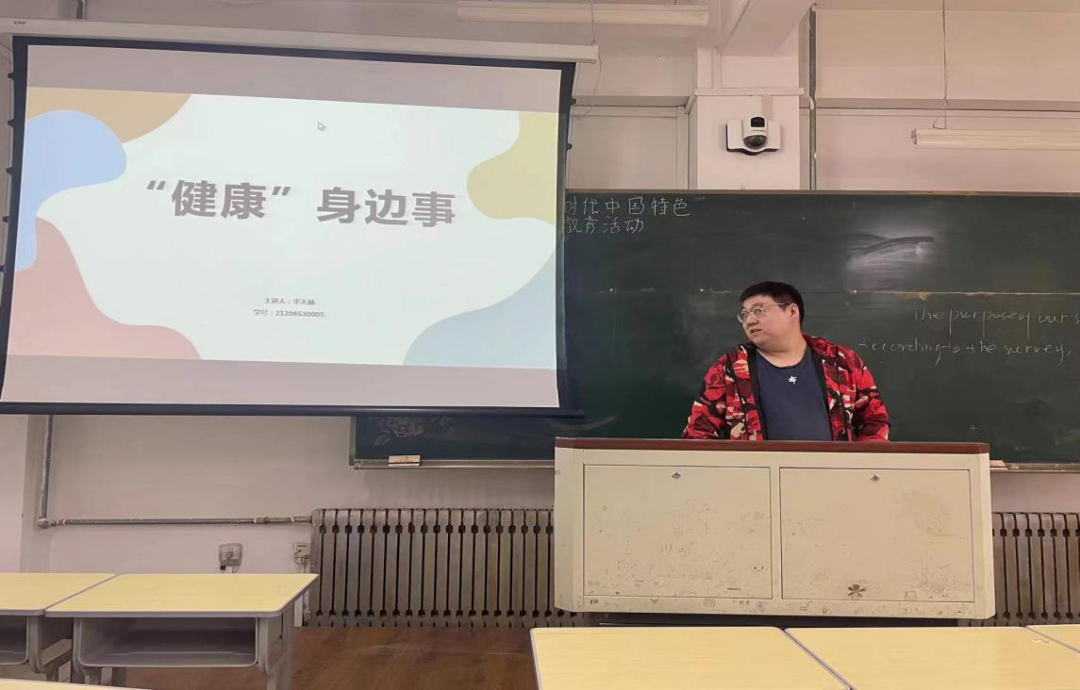2021级公共卫生硕士研究生李天赫以《健康身边事》为主题汇报,通过举例的方式带领同学们认识日常生活中存在的健康问题,包括饮食运动、生活作息等。随后教给同学们如何判断公共场合的卫生是否达标,提醒同学们要养成良好的卫生习惯,保持健康的行为生活方式。