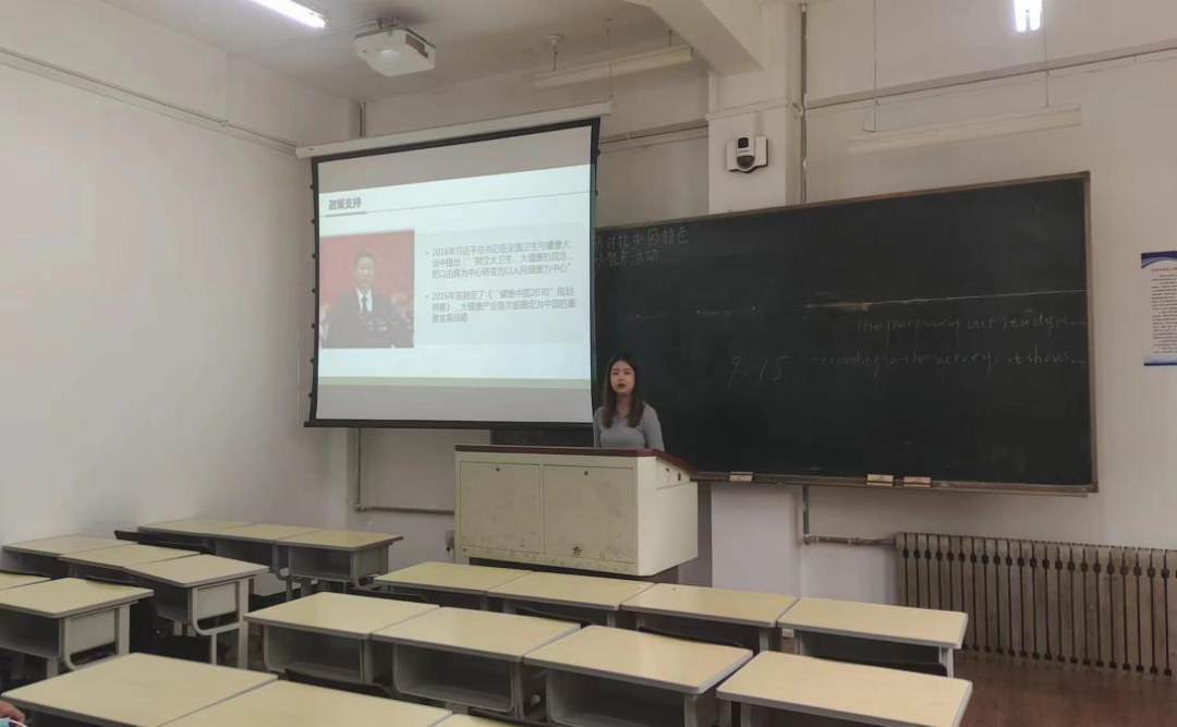 随后2021级社会发展与管理药学硕士研究生付雨鑫以《大健康产业及东北地区大健康产业的机遇和挑战》为主题汇报,详细介绍大健康产业的内涵、市场规模和驱动因素,系统分析东北地区大健康产业的主要问题、对策和着力点,让同学们收获了大健康产业的发展前景,同时了解到更多的创业机会。