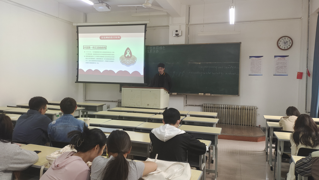 2021级公共卫生硕士研究生张宇以《预防艾滋病》为主题汇报,分别从艾滋病的基础知识、艾滋病的流行方式以及艾滋病的预防方法等三个方面展开讲解。通过课堂互动的方式让同学们掌握了更多艾滋病的防治知识,同时也增强了同学们的自身防范意识和能力。
