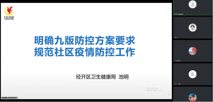 池局长分析当前新冠疫情形势和防控策略,并从目标任务、工作规范、工作要求和近期经开区疫情防控工作复盘几个方面进行深入浅出的讲解,重点介绍聚集性疫情处置社区防控要求和主要措施。