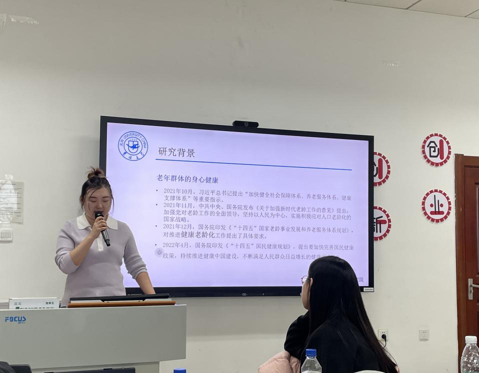 刘美辰硕士以《社区养老服务对我国老年人健康状况的影响研究》为题,强调老龄化是中国面临的重要社会问题,老年人群体的健康需求愈发凸显,而社区养老服务作为一种重要的养老模式,对老年人的健康状况具有一定的影响。