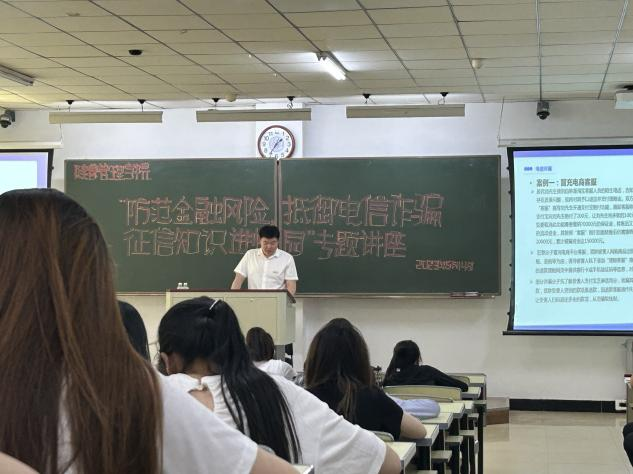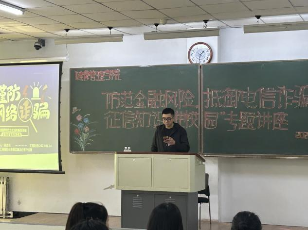 随着信息技术高速发展,信息获取方式呈现出高效便捷趋势的同时,也给电信诈骗提供了行骗的温床。诈骗形式多种多样、防不胜防,逐渐成为社会发展的不稳定因素。为提升学生反诈意识,保障大学生合法权益,bat365官方官网于2023年6月14日下午,在2204教室开展题为“防范金融风险,抵御电信网络诈骗,征信知识进校园”主题讲座。