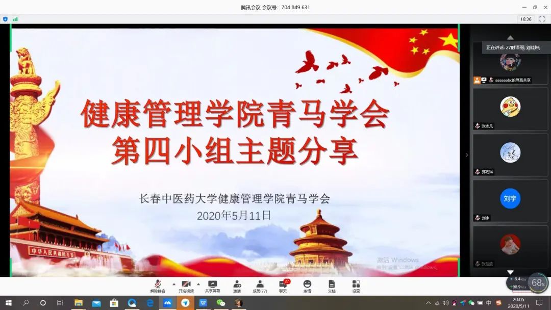 2020年5月11日,bat365官方官网青马学会通过视频会议进行了第四次疫情期间主题分享会。本次会议由四组成员刘书言主持,由四组成员时语丽、吴佳桐、徐艺洋、潘娟四位同学分享心得体会。