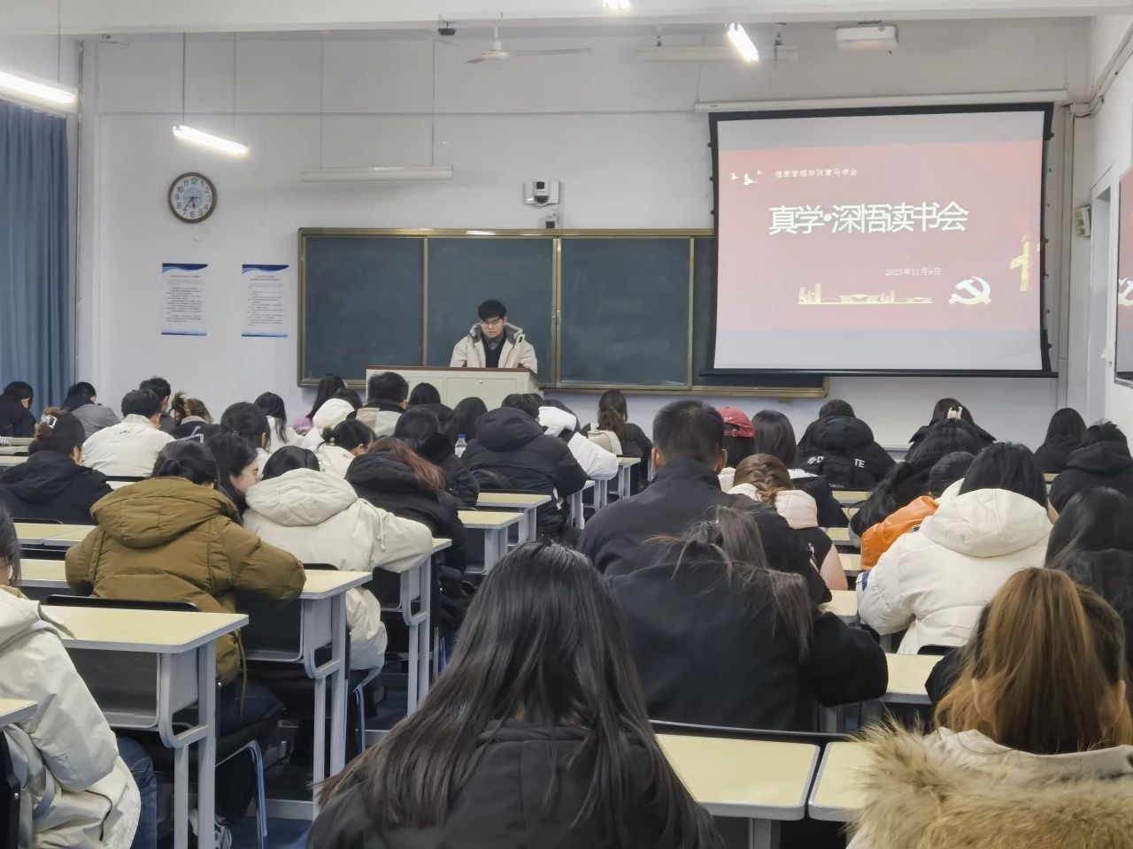 2023年11月9日,bat365官方官网青马学员在致知楼1101开展第十三期学习读书会。此次青马学员共读一本书----《中国人,你要有自信》。
